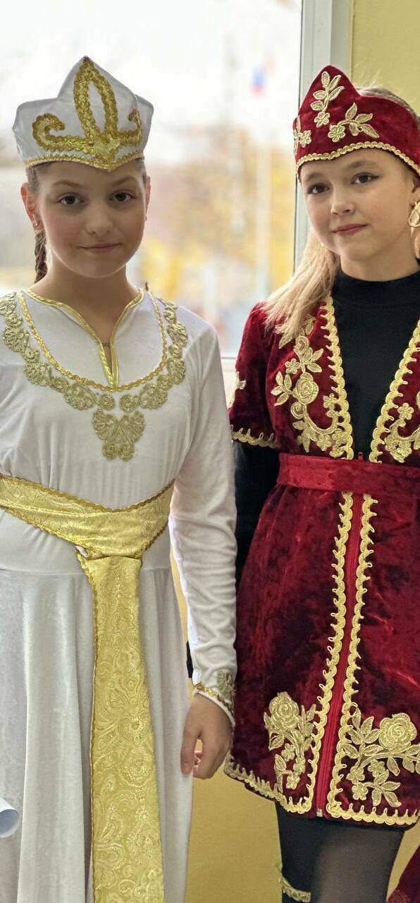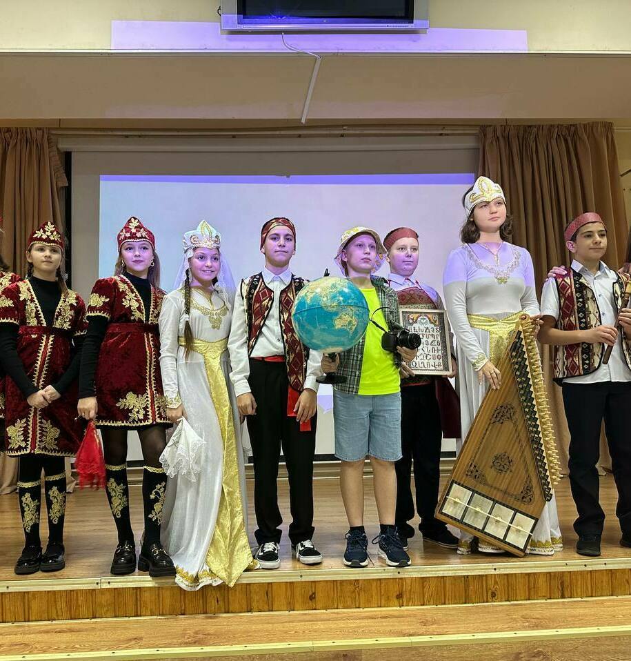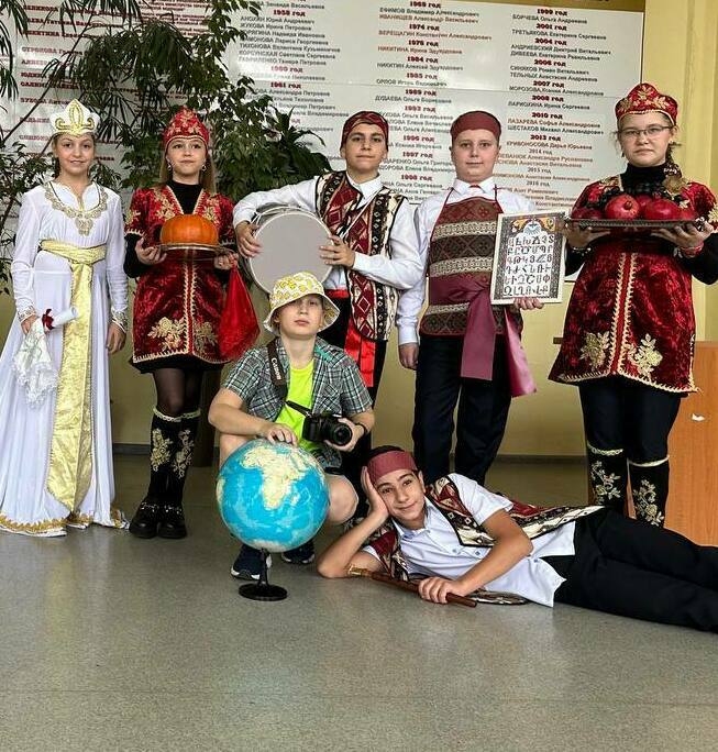 Наш класс представлял Армению на фестивале дружбы народов. Ребята подготовили сногсшибательные костюмы, инсценировали армянскую свадьбу, испекли вкуснейшие традиционные сладости "гату" и "пахлаву", из тыквы приготовили "хапаму" и под ритмы и музыку народных инструментов "дхола", "канона" и "дудука" станцевали танец "кочари", символизирующий сплоченность и единство армянского народа.